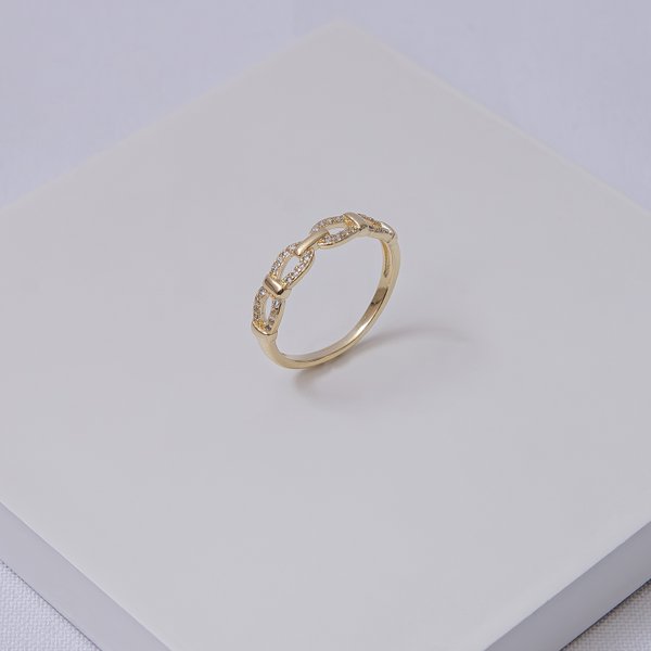Anel Folheado a Ouro Elos Cravejados Zircônia Hipoalérgico