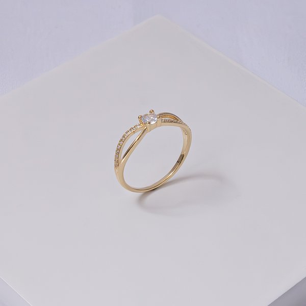 O anel folheado a ouro com fios entrelaçados e zircônia é uma joia sofisticada que une design moderno e brilho intenso. Seu detalhe entrelaçado com pedra central traz elegância única, ideal para quem busca estilo e sofisticação em cada detalhe.