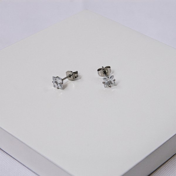 Brinco Aço Inox Ponto de Luz Zircônia Quadrada