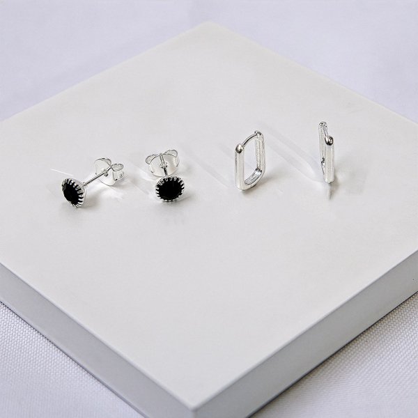 Peças folheadas a prata com acabamento de alta durabilidade, antialérgicas e com brilho intenso. O design retangular da argola e o cristal preto em garras trazem um toque contemporâneo e refinado.