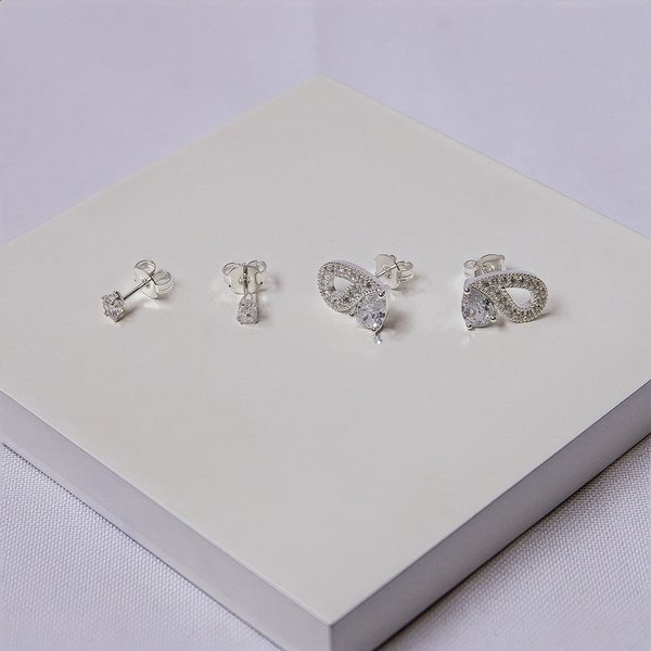 O brinco folheado a prata com zircônia gota da Ralifla Semijoias é a escolha ideal para quem busca elegância, versatilidade e brilho na medida certa. Este kit de brincos conta com dois pares: um mini brinco de zircônia gota e um brinco gota vazada com borda cravejada, perfeito para composições modernas e delicadas.