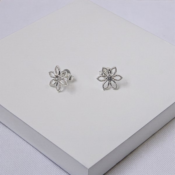 Brinco Folheado a Prata Flor Vazado com Zircônia Cristal