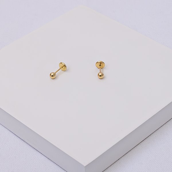 Brinco Infantil Folheado a Ouro Bolinha Tarraxa Baby