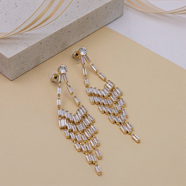 Brinco Pendente Folheado a Ouro com Zircônias Carré Franja Elegante
