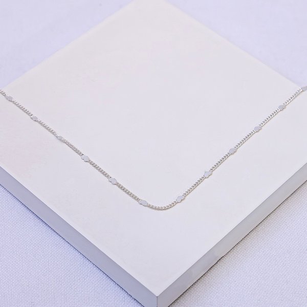 Colar Choker Folheado a Prata Elo Fino com Chapinhas de Coração