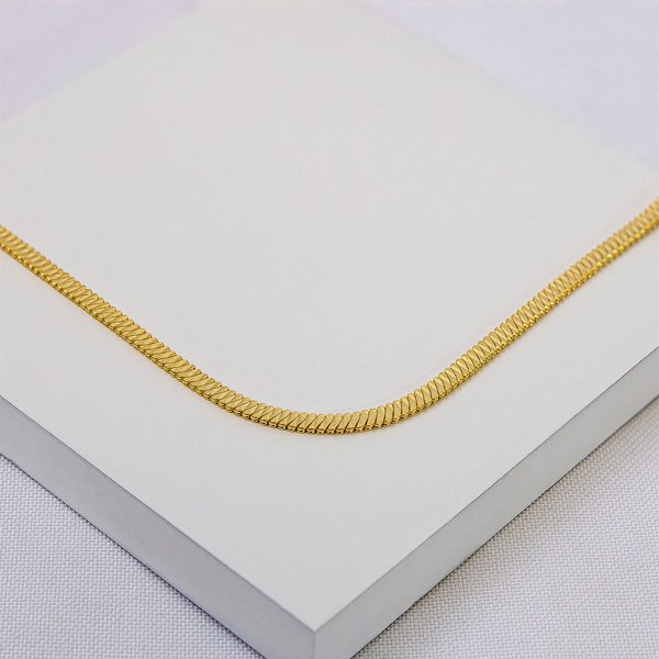 Colar choker folheado a ouro com malha achatada dupla, estilo snake chain, perfeito para quem busca uma peça moderna, brilhante e sofisticada. Ideal para elevar looks casuais e glam dar aquele toque de luxo no dia a dia.