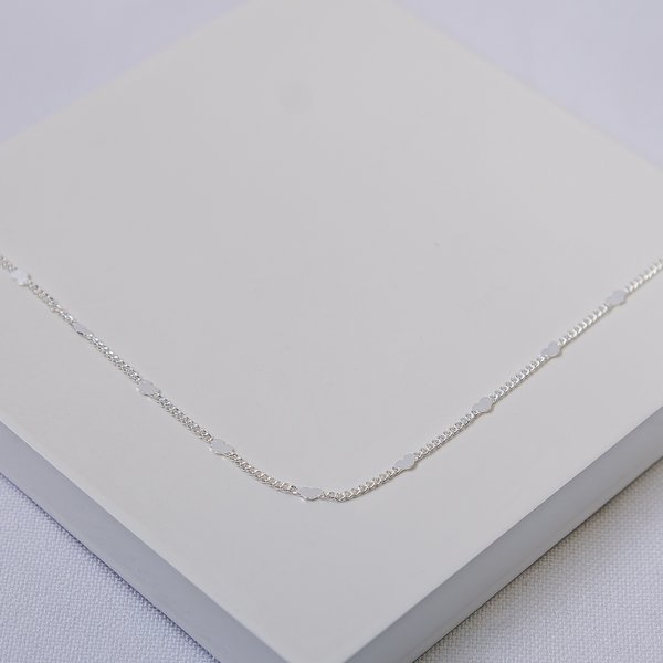 Colar Feminino Folheado a Prata Elos Finos com Corações