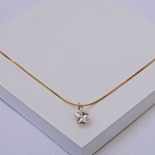 Colar Folheado a Ouro Ponto de Luz Estrela Zircônia Veneziana