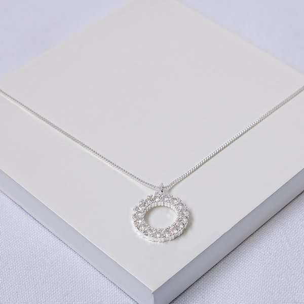 Colar Folheado a Prata Veneziana com Pingente Círculo Vazado Cravejado
