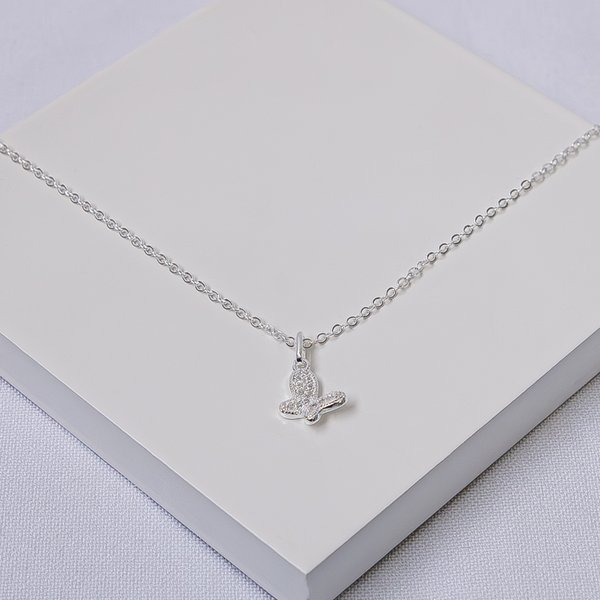 Colar Infantil Folheado a Prata com Pingente Borboleta Cravejada