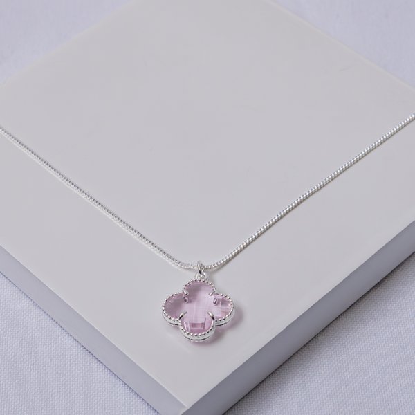 Colar Veneziana Folheado a Prata com Pingente Trevo Rosa