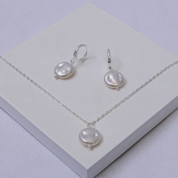 Conjunto Folheado a Prata com Colar e Brinco de Pérola Orgânica