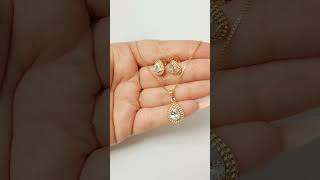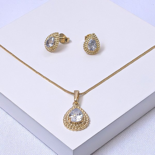 Conjunto Folheado a Ouro Colar e Brinco Gota Zircônia - Ralifla Semijoias
