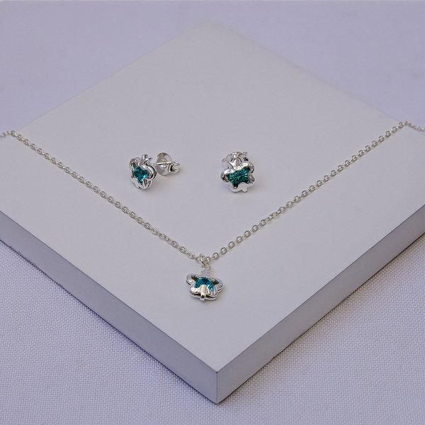 Um conjunto infantil superdelicado, pensado para meninas que amam brilho e detalhes fofos. O colar e brinco com borboleta azul folheada a prata entrega charme, leveza e conforto no dia a dia, sendo perfeito para presente e para compor looks infantis cheios de personalidade.