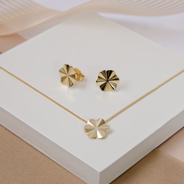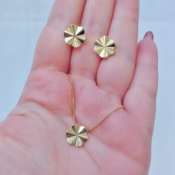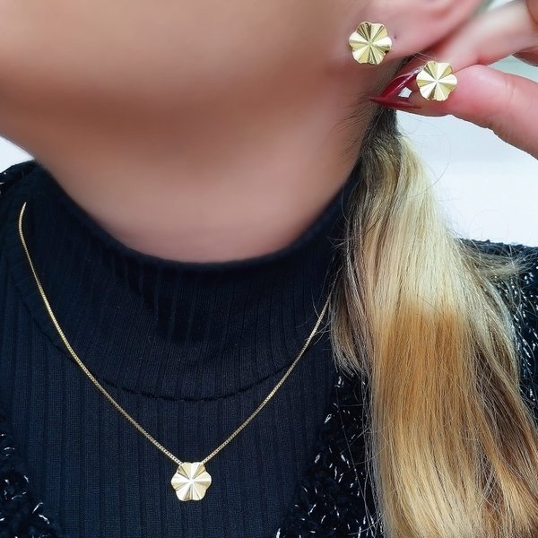 Conjunto Orgânico Colar Veneziana e Brinco Flor Folheado