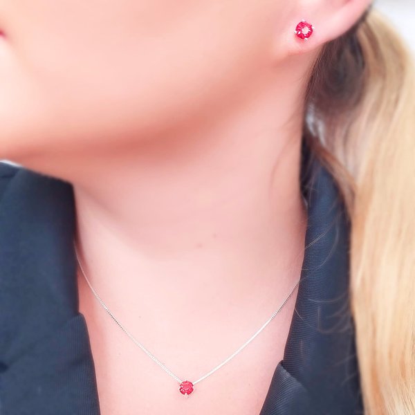 O Conjunto Veneziana folheado a prata da Ralifla Semijoias é composto por colar e brincos com cristais vermelhos de 6 mm, trazendo sofisticação e charme em cada detalhe. Com design atemporal, é ideal para mulheres que desejam unir delicadeza e elegância em um acessório completo.