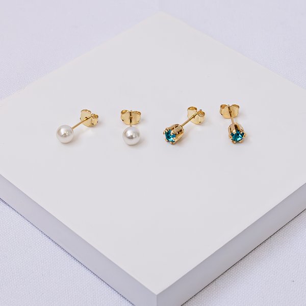 Dupla de Brincos Folheado a Ouro com Pérola e Cristal Azul