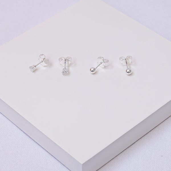Essa delicada dupla de brincos folheado a prata da Ralifla Semijoias une sofisticação e leveza em peças perfeitas para o dia a dia. Composta por um brinco de bolinha lisa e outro com zircônia cristal redonda, é ideal para composições no segundo furo ou como conjunto infantil. Hipoalergênica e confortável, combina com todos os estilos.