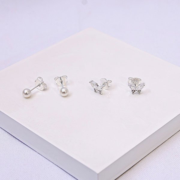 Delicadeza e brilho em dose dupla! A Dupla de Brincos Infantis Folheados a Prata combina o charme clássico da pérola com o toque lúdico da borboleta cravejada. Um conjunto encantador, perfeito para complementar o visual das pequenas com elegância e conforto.