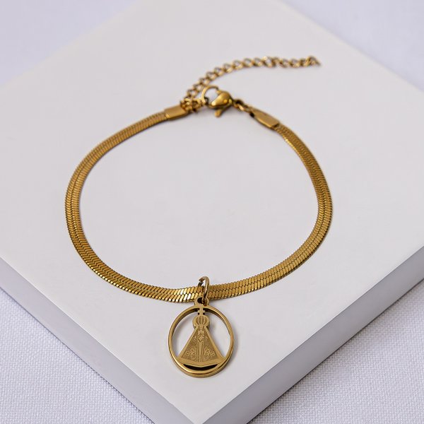 Pulseira Aço Inox Dourada Nossa Senhora Aparecida Feminina