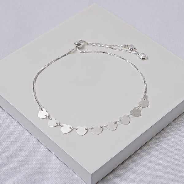 Pulseira Feminina Folheada a Prata Corações Ajustável
