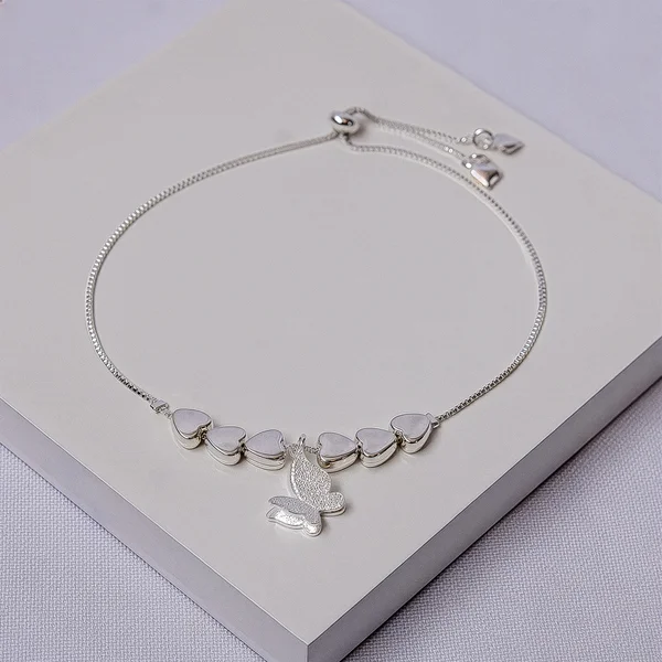 Pulseira Folheada a Prata Corações e Borboleta Ajustável Veneziana