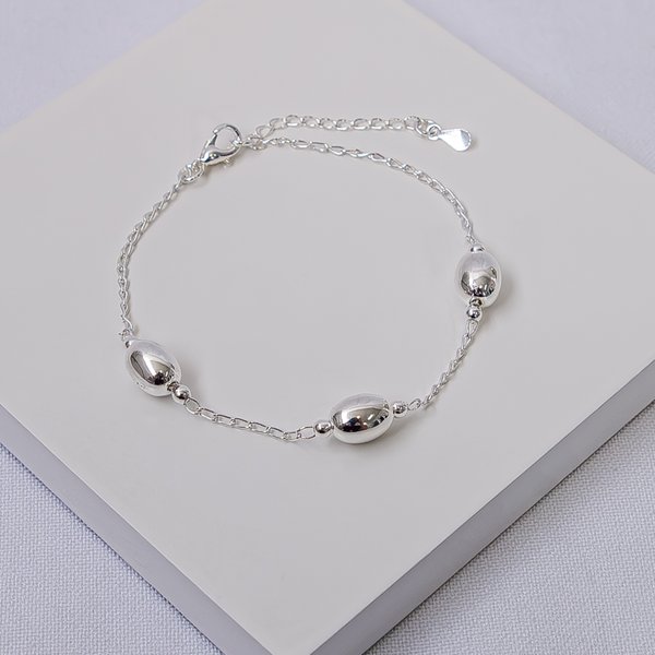 Pulseira Folheada a Prata Elo Cadeado com Bolas Ovais