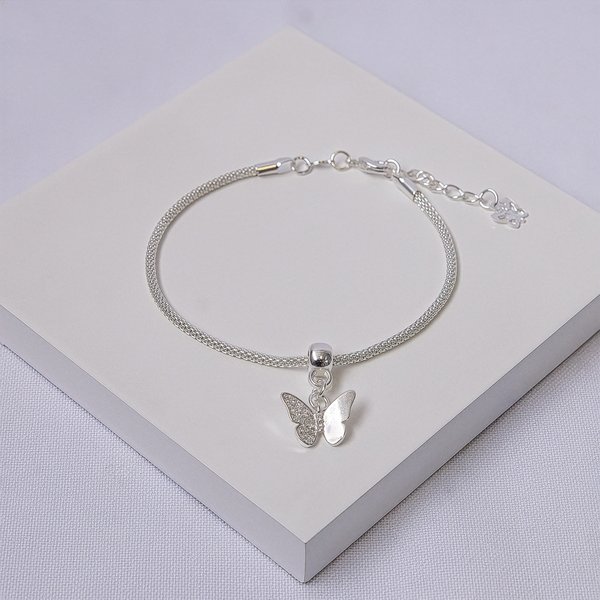 A pulseira folheada a prata da Ralifla Semijoias traz delicadeza e sofisticação em um design moderno. Com malha telinha confortável e pingente de borboleta cravejado com zircônias, é uma peça feminina, elegante e perfeita para complementar looks do dia a dia ou ocasiões especiais.