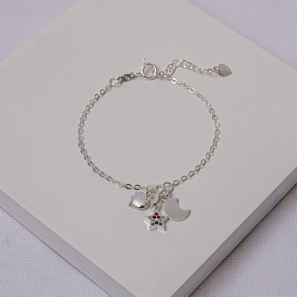Pulseira Infantil Folheada a Prata Coração, Lua e Estrela com Zircônias
