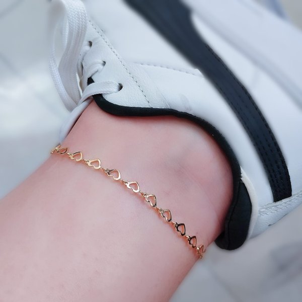A Tornozeleira Folheada a Ouro Corações Vazados Delicados é perfeita para mulheres que buscam charme e delicadeza. Com corações vazados unidos em toda a peça, esta tornozeleira combina elegância, leveza e acabamento hipoalérgico, ideal para complementar looks do dia a dia ou ocasiões especiais.