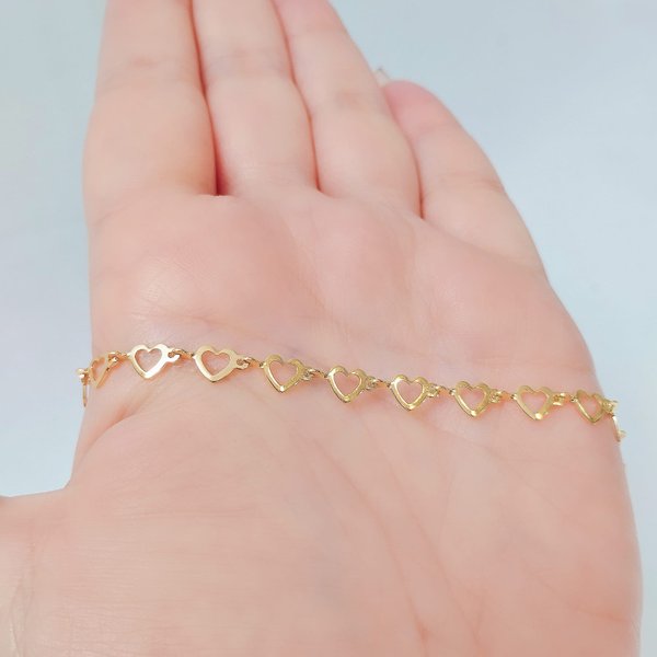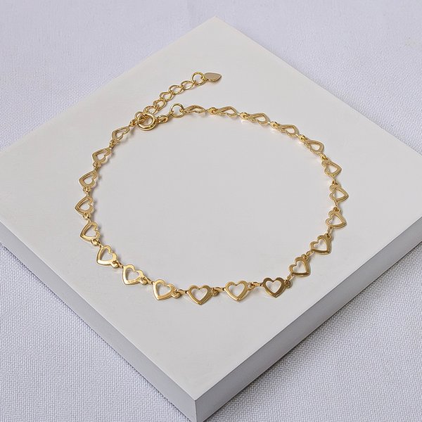 Tornozeleira Folheada a Ouro Corações Vazados Delicados