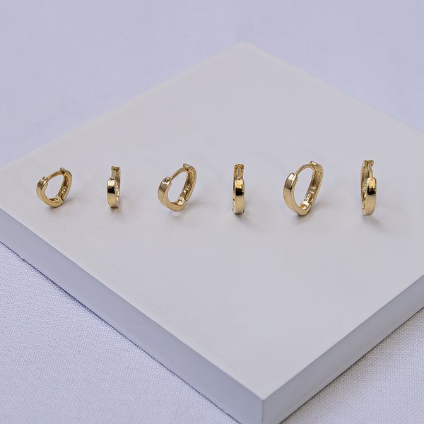Trio de Brincos Argola Oval Lisa Folheado a Ouro