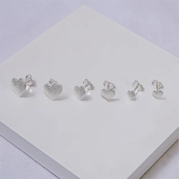 O trio de brincos coração fosco folheado a prata é perfeito para quem busca delicadeza e versatilidade no dia a dia. Com design romântico e acabamento moderno, o kit de brincos femininos em três tamanhos permite diversas combinações, sendo ideal para quem possui múltiplos furos ou gosta de composições elegantes e minimalistas.